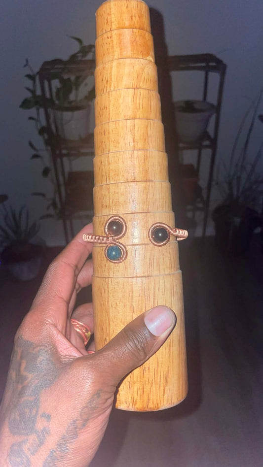10mm (Round) Hand-Made Triple-Stoned Copper-Wrapped Bangle
